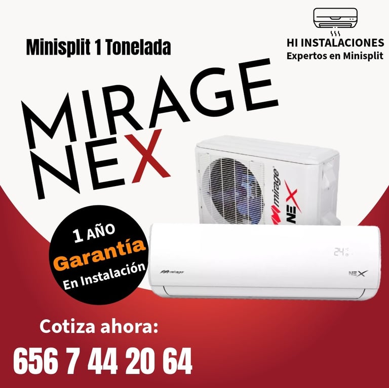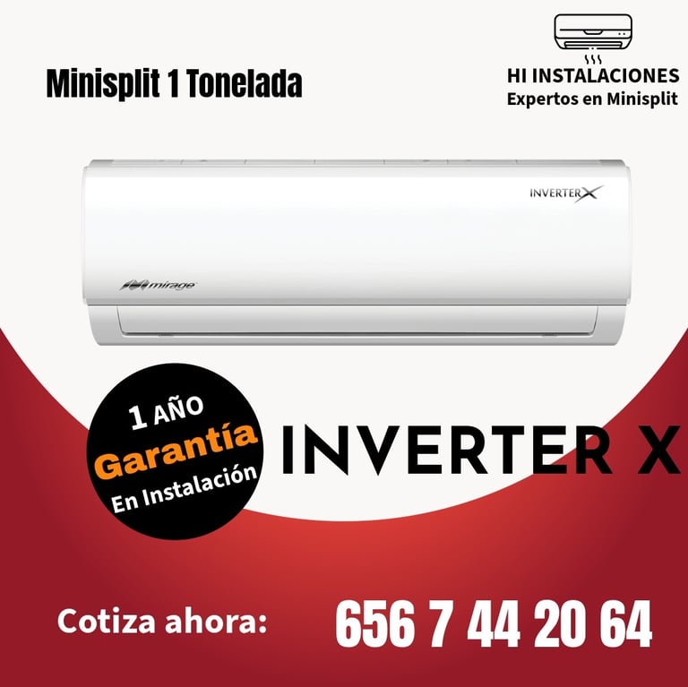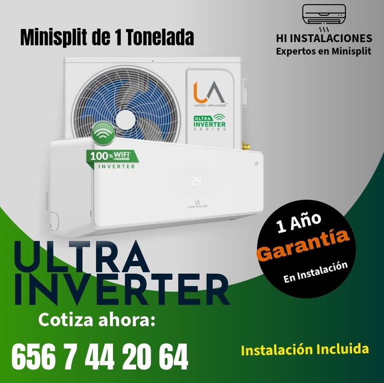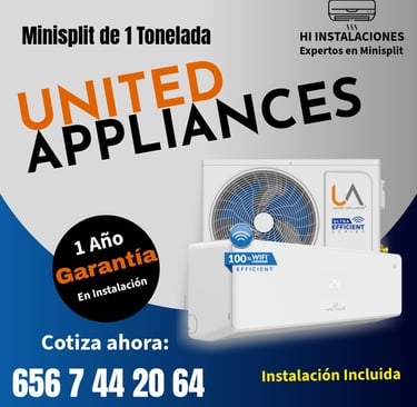 En Hi Instalaciones somos expertos en minisplits y trabajamos exclusivamente con marcas de reconocida calidad como Mirage, Gree y United Appliances, ofreciendo a nuestros clientes en Ciudad Juárez equipos eficientes, duraderos y con garantía de fabricante. Ya sea que necesites un equipo convencional o con tecnología inverter, tenemos la opción ideal para tu hogar o negocio.